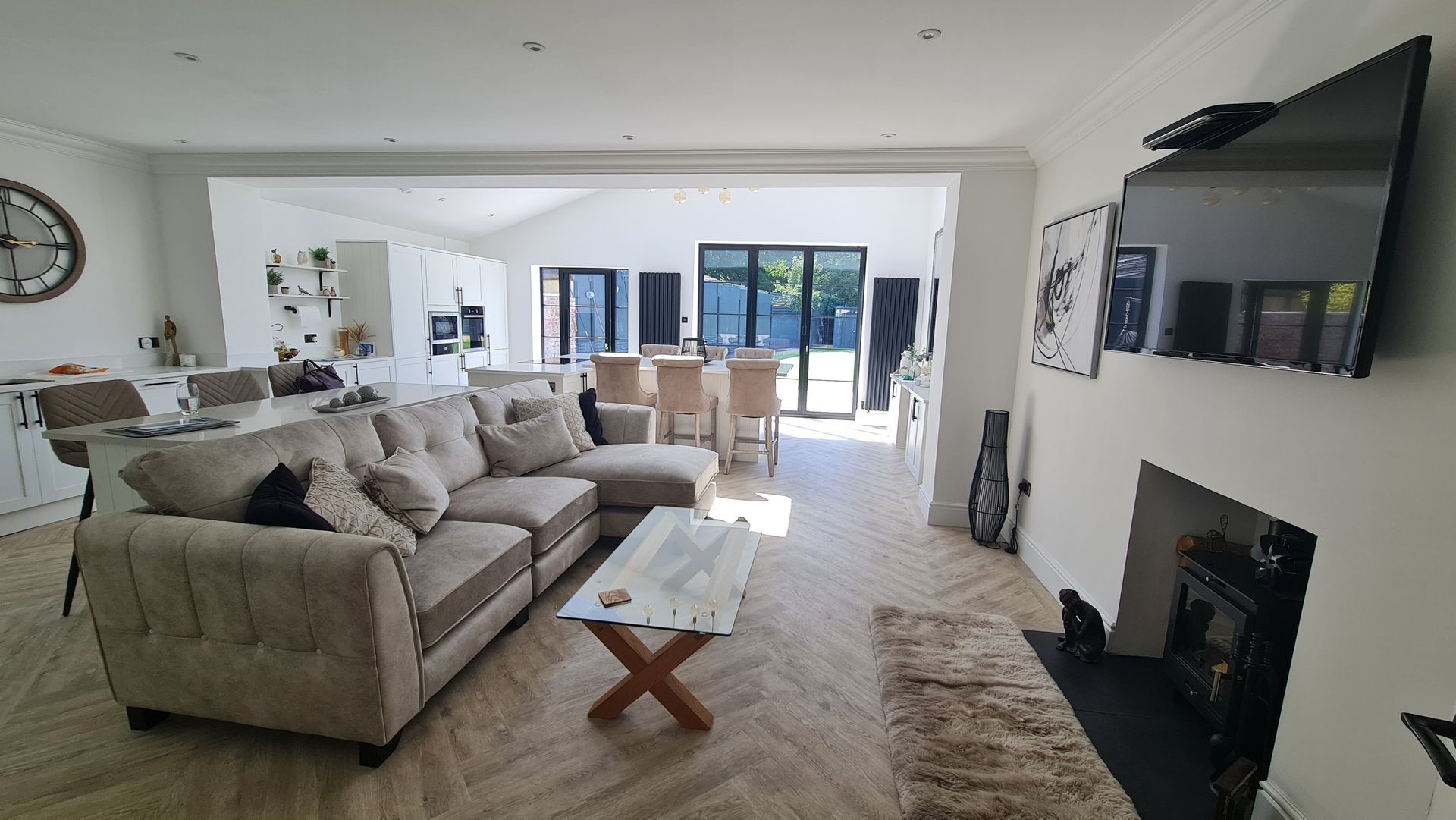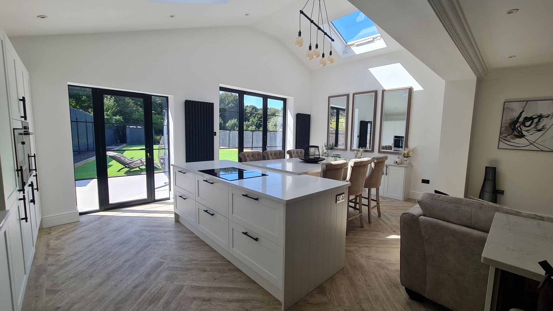 The project was completed successfully, with brightly lit bedrooms and open plan Kitchen/Diner/Lounge which suited the needs of our Client providing more space for entertaining guests. The large openings and rooflights maximise natural daylight to the spaces and afford expansive views of the garden and fields beyond.